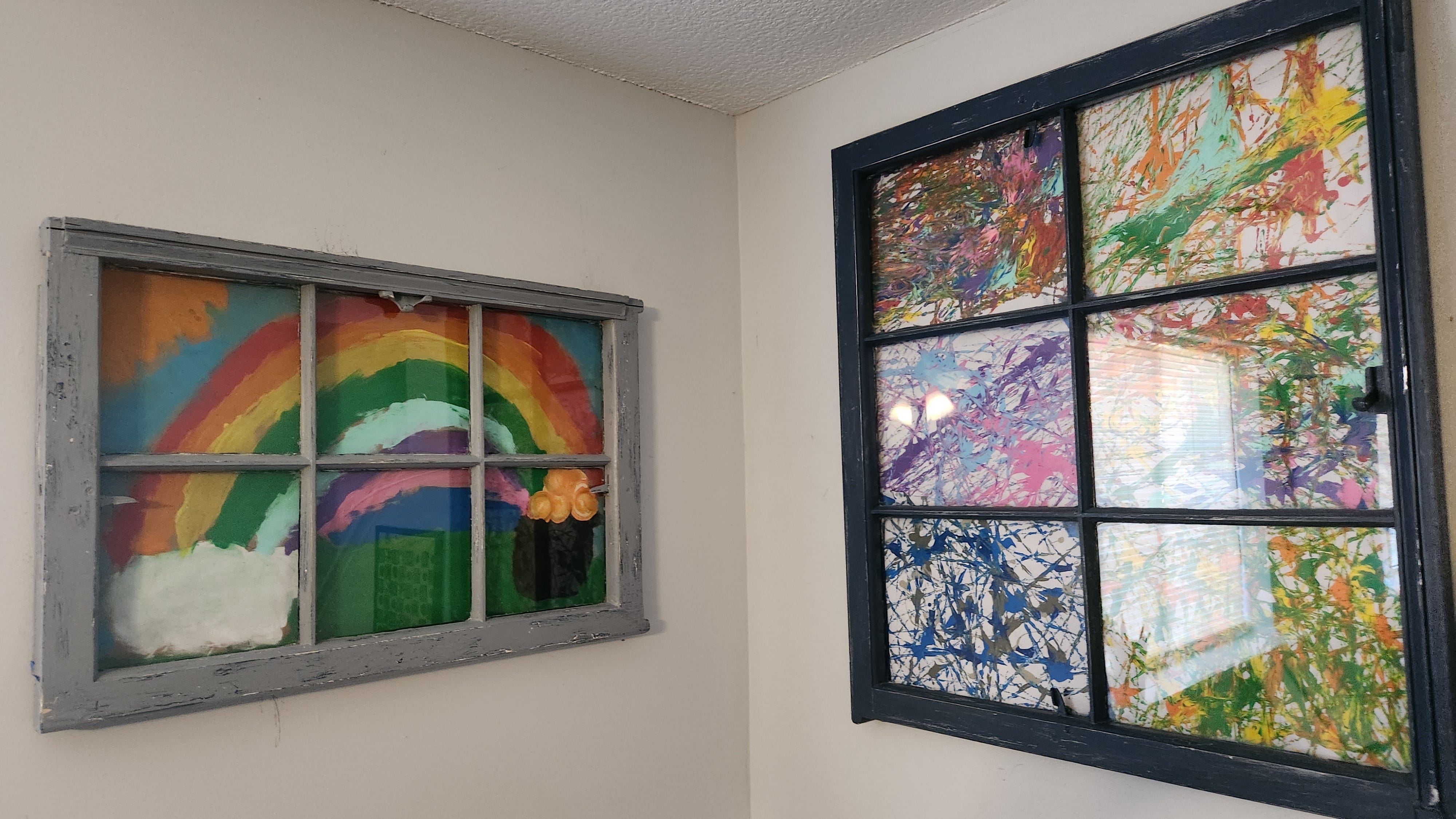 I am a huge fan of getting things framed and having things framed. I have a very rudimentary set of frames that I use for my kid’s art and can rotate things in and out. We also have a couple of restored old window panes that my kid has art sitting in for her play area, shout out to my wife for restoring them.